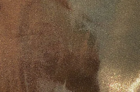 Acabado en foil metalizado en tonos dorado y bronce, que genera un efecto brillante y cómodo. La textura natural se mantiene visible, combinando lo rústico con lo glamoroso. Algunas prensar pueden ser de noche, chaquetas, accesorios, decoración de interiores.